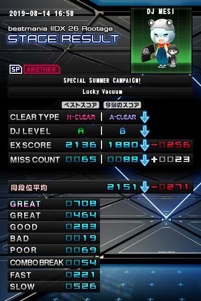8月14日のイチオシから SPあなざースペシャサマーキャンペ ランダム使用 基本的正規譜面のがスコア安定なのはそろそろ考えないといけないのか