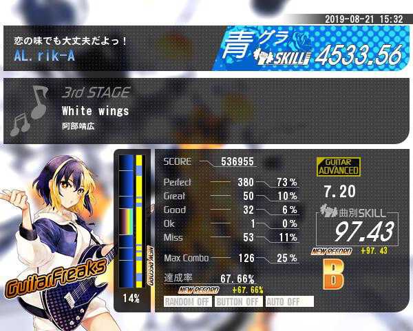 最後に最高クリアLv大幅更新(6.45→7.20)。天国まで1000km。 全ては4小節に懸かってる譜面。