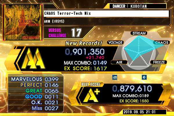 なんとか900kまで持っていきましたが(´ρ`) 未だにさっっっぱりタイミングが解ってません。リズムもさることながら、譜面も判別しにくい捻りにアフロまで降ってくるとかおかしい………本当に17なのか。。