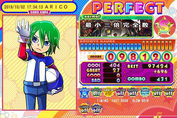 最小三倍完全数(N)スコア更新、初回で出来なかったフルコン目指したらパフェとSランク取れた、動画で聞いて構成覚えて今回プレーしました。