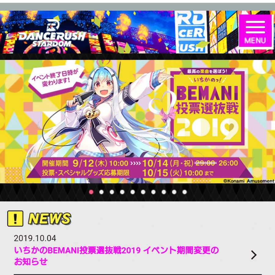 ダンスガイドオーディションの投票 今日の17:00まで! https://p.eagate.573.jp/game/dan/1st/audition/index.html ※画像の所を左右にスワイプしても、マニフェスト関連・スタンプキャンペーン・EXTRA STAGE曲追加の情報しか出てきません
