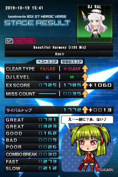 前回エクハ落ちしたこの曲。とりあえず難は点灯できるけどスコアやBP減らしがどこまで進むかな?って感じですね。あとトリルのとこ以外も結構ムズイぞ?