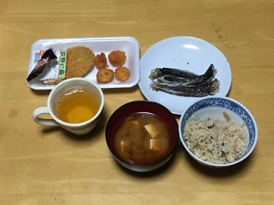 #KbaMusiccafe 今日の #夕飯 は、#混ぜごはん #牛肉コロッケ #イカフライ #イワシ焼き #味噌汁 を食べて #お茶 を飲みましたがとても美味しかったで明日と明後日は、お休みですので明日と明後日がお休みの皆さんは、良い休日をお過ごしくださいね!#キングレコード #KONAMI50th #キンクリ #キンクリ堂