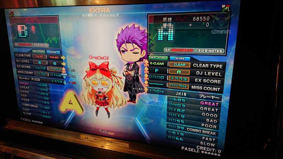 JHINさん選曲 SigSig(A) ノマゲが目標とのこと。これノマゲは最後の皿だけで簡単に崩される危険性あるわ。普段イージーがほとんどだから、ノマゲは本当にヒヤヒヤ…