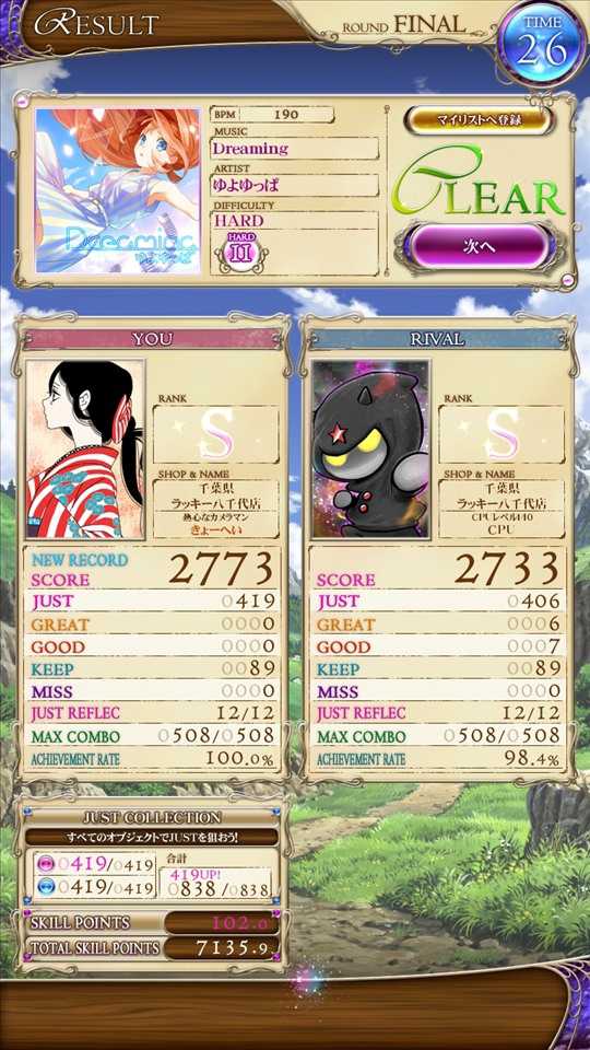Dreaming白理論値。こちらの曲は全譜面理論値達成しました。