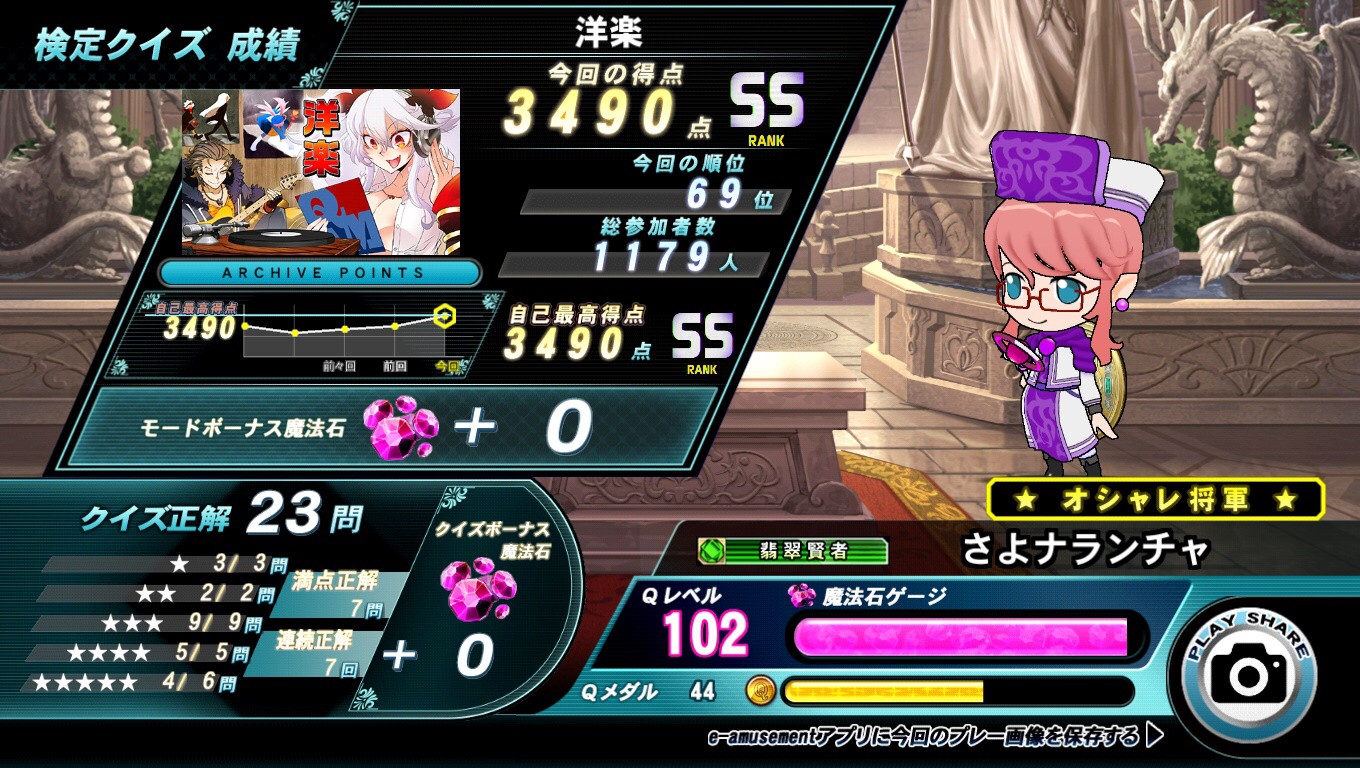 ゲーセンで粘着して粘着して粘着して粘着して 閉店時間だからコナステで粘着して粘着して粘着して粘着して やった結果がこれです 精神的に辛いのでしばらく洋楽検定は触りません。壁紙まで1コインで取れたのはせめてもの救い