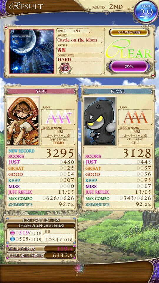 Castle on the Moon。 コチラもスコア更新☆ 久し振りにACで「BLUE DRAGON」もやりたいですけどねー(・ω・)♪