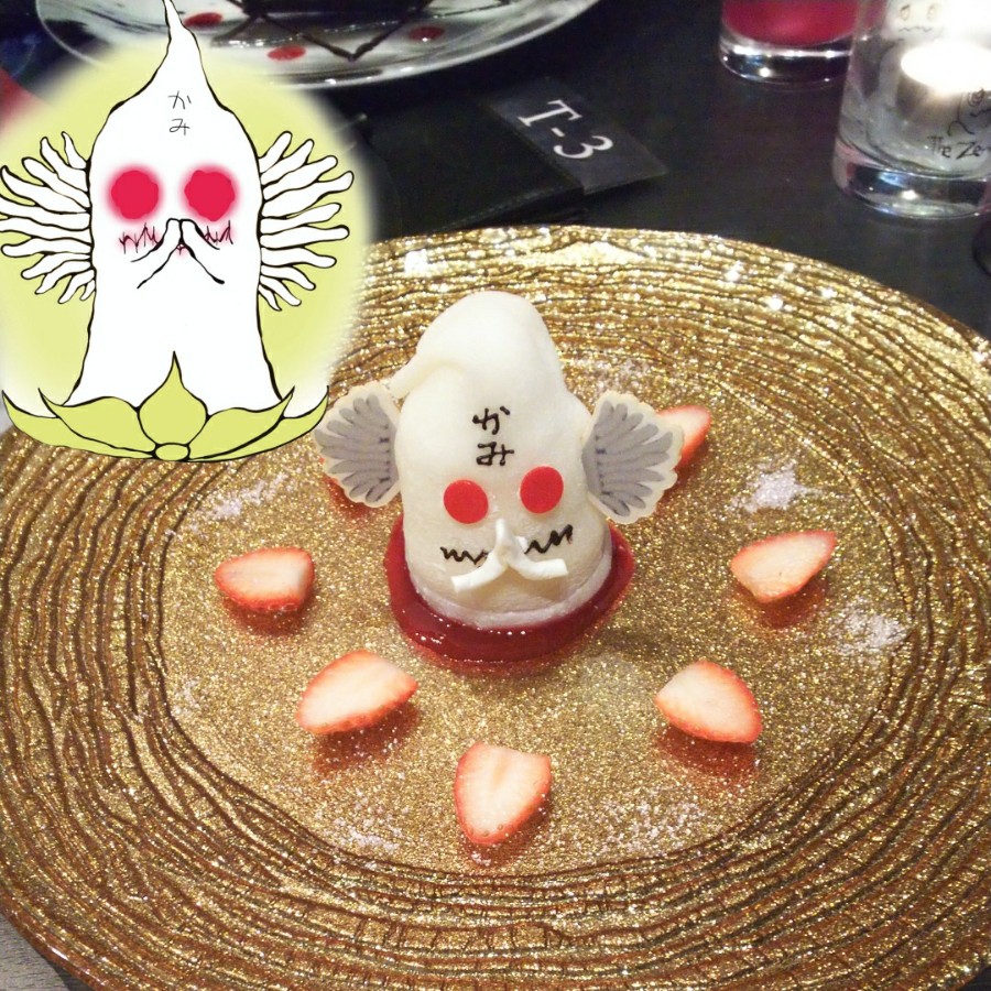 たまには違うこと話しマース この前DIR EN GREYのボーカル京氏考案のキャラクター ゼメキス家のコラボカフェにお邪魔しまーしたー 画像の神ペニュアイスをはじめ、ゼメキス家のキャラを模した 素敵なメニューが目白押しでーす ファン心をくすぐる内装やムービーも、食事をより楽しませてくれまーしたー 以上、でぃるりさんでしたー
