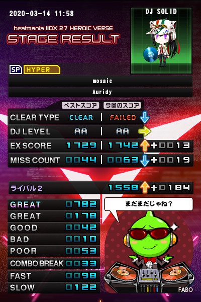 (;A;)ミスカンはMosaicかけてくれぇ(ノ∀`)アチャー スコア更新