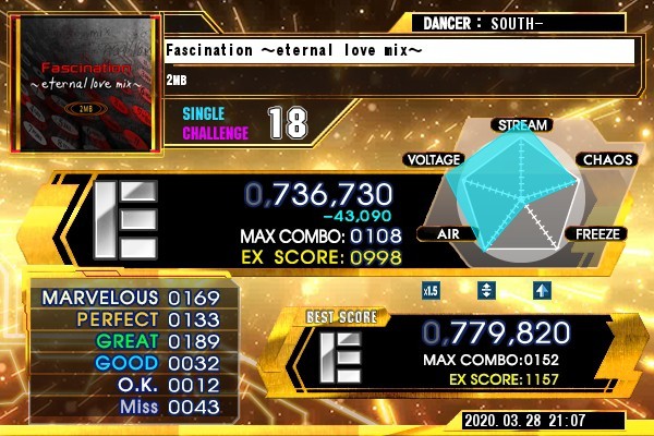 あぁ!!ラストの同時6連に入った瞬間落ちた…orz 試しにミラーかけたら軸同時が過去最高に上手くいって「I love only you」の所までゲージ緑だった…後一歩なんだけどな~笑。