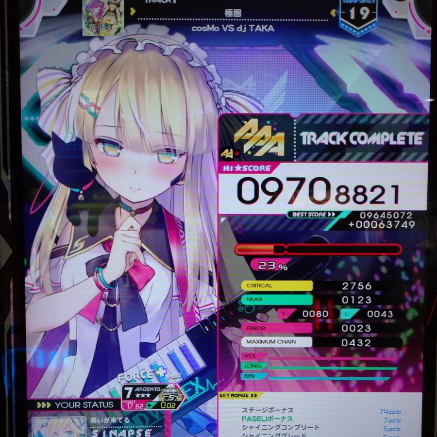 極圏 HVN ハード&AAA! lv19初AAA!FLOWERと月光乱舞の縦連に追い付けてるあたり速度にも慣れてきてる EXHより先にAAAとっちゃった、EXHもちゃんとやっとこう…