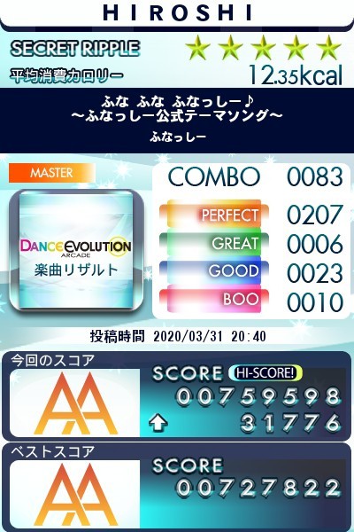 DDRA20のあとダンエボやりました ふなふなふなっしーMASTER AAAいけても判定画面に出るのに頼ってるのでSTEALTHで苦労しそうです