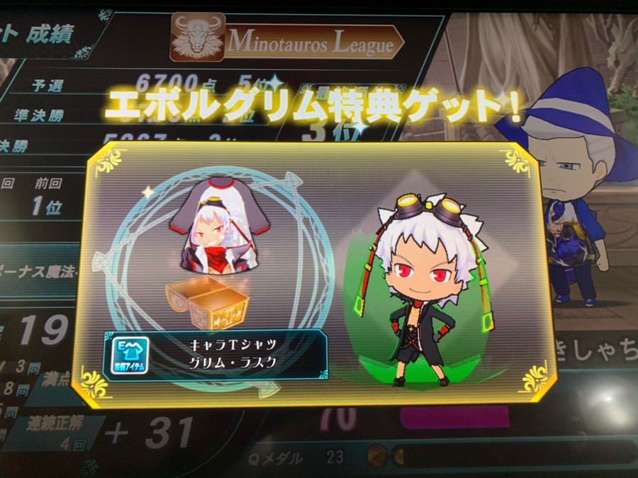 グリム・ラスク「お前、中々やるな…。俺は盗られるのは嫌いだが、お前なら渡してやっても良いかもな…。ほらよ、このTシャツくれてやるぜ!」 サブでグリム・ラスクTシャツ貰えました!
