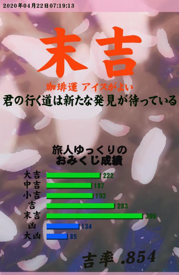 皆さんおはよーございます!! 今日のおみくじ…そろそろアイスコーヒーが…と言いたいけど缶コーヒーしか無い現実… http://p.eagate.573.jp/gate/e/toomikuji.html?from=article