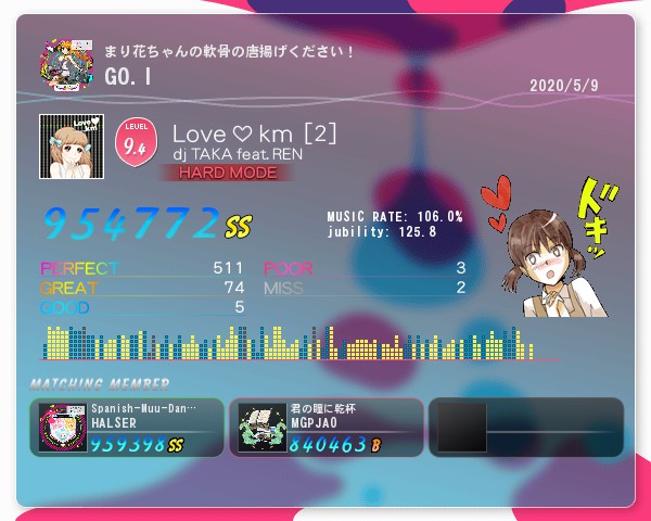 #今日のようやっとる ラブキロホールド 赤 ハード レート106%で新規対象入り! 彡(^)(^) よっしゃ!復帰後にユビリティ更新は大きい!