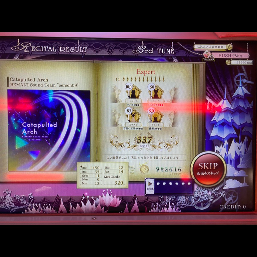 Catapulted Arch[Exp]33点、スコアと引き換えにリサイタルの評価が上がり始めてる、両立させたいんだけどなぁ…。