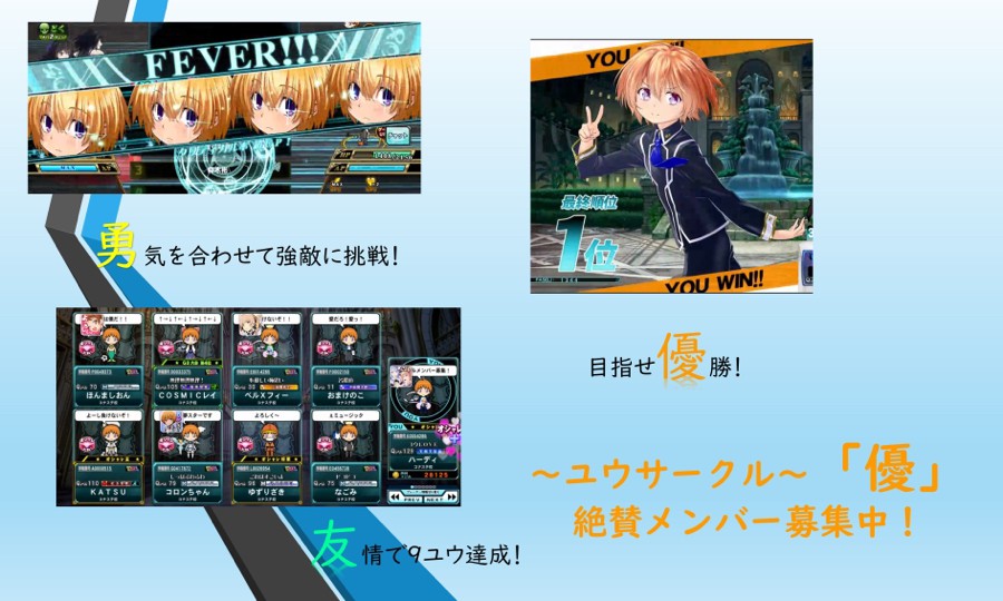 #ユウサークル いつものユウサークル活動のお知らせです。 今週は、次のlimitedに備えてエフェクト限定戦も実施します。 新メンバーも随時募集中ですので、奮ってご参加ください! 【第24回活動】5/31(日) ○ 協力プレー(ハード) 1503、1515、1527、1539 ○ サークル対戦 1552、1604(エフェクト限定) 1616、1628(フリー) 適切な感染予防策をとった上でご参加お願いします。