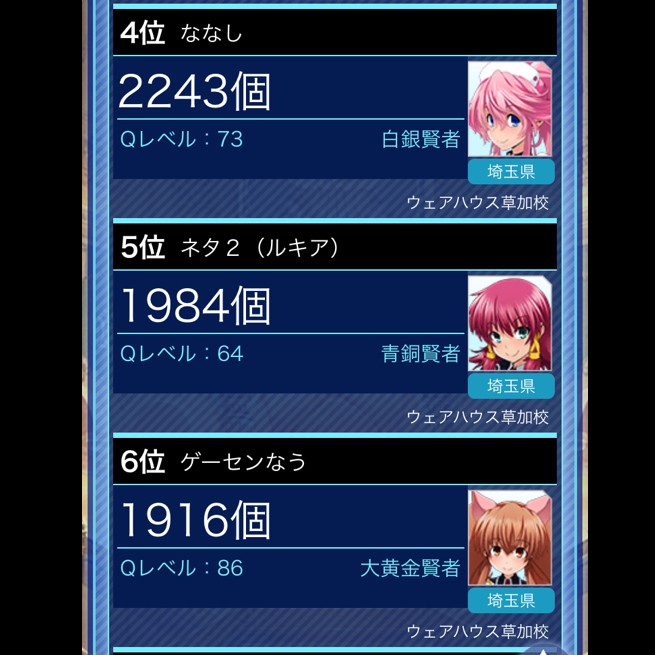 先月のウェア草加ランキング♪ 30日(土)しか行ってないですが 3枚の所持カードが並びました(^^; 僅かですが、メインのなうより サブカが上になる事態に!