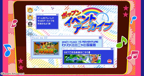ハロー!ミミだよー 6月4日(木)10:00から「ポップンイベントアーカイブ」に 「わくわくミミニャミ探検隊」だ ADVENTUREのイベントだ!探検隊していたなぁ~ お宝発見~で新曲『Crumble Soul』/lapix が登場するよ #popn http://eagate.573.jp/game/popn/peace/