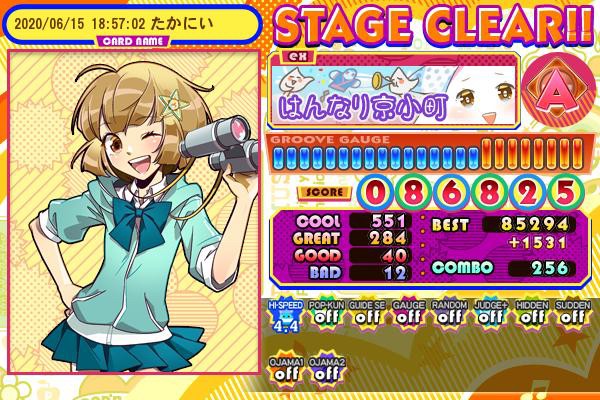 「はんなり京小町」(EX) Lv41にチャレンジ! 菱クリアに更新しました♪ 今年は京都へ行ってないから、この曲で気分だけでも… と思いましたが、そういやここ数年は京都競馬場しか行ってませんね(笑)。