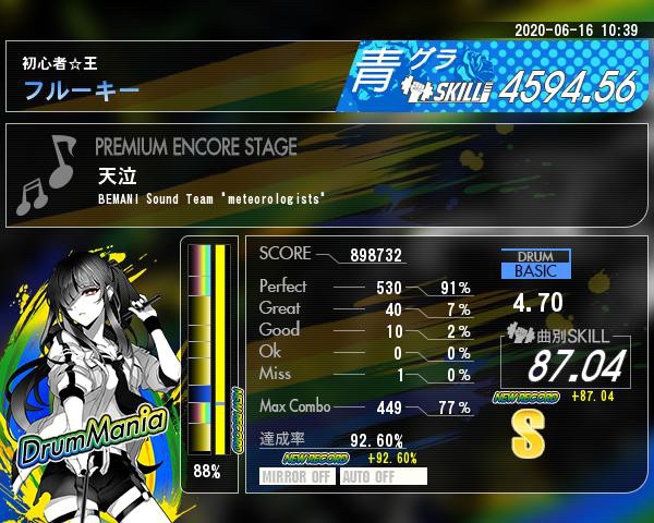 天泣の初見結果 競走馬のセラン(意味:天泣)もよろしくね #フルーキーギタドラ練習帳