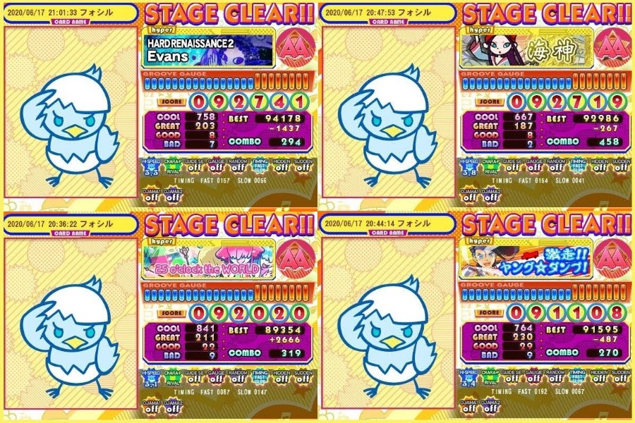 Lv40~43譜面をキャラポップでAA達成。 海神はFC目前でした。