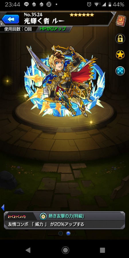 初獲得ガチャで出てきたルー。 着いている実が友撃。 付け替えしないと。 #モンスト
