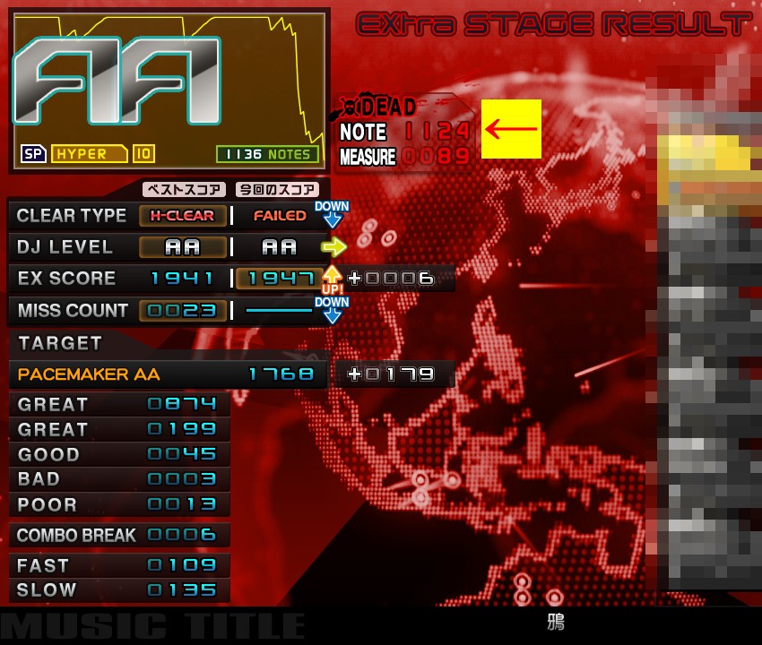 #今日のガハハ ・鴉 (SPH・Lv10):残り12ノーツでDEAD どちらかというとノマゲ殺し寄りなのでエクハ狙いでも壁になりますね (辛い)