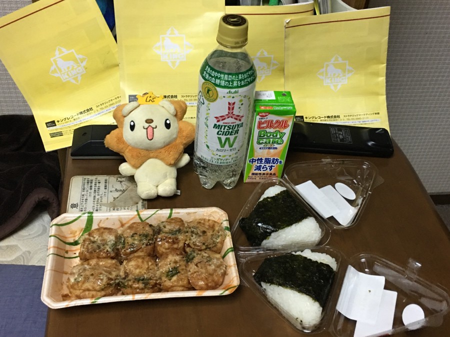 #KbaMusiccafe 先程 #寿司丸忠 #ナフコ不二家 で安かったので買った #とろ〜りたこ焼き #高菜おにぎり #しぐれおにぎり #三ツ矢サイダーW #ピルクルBodycare で美味しかったです!#きんくりん #アサヒ飲料 #日清ヨーク #たこ焼き #KONAMI #キングレコード #キンクリ #キンクリ堂 #KINGRECORDS