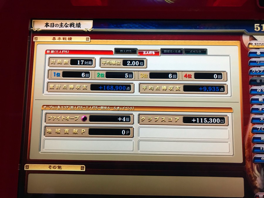 今日久々に麻雀やりました 結果は順位的に満遍なく、収支はとりあえずプラス、段位は二段から三段に昇格しました\(^o^)/