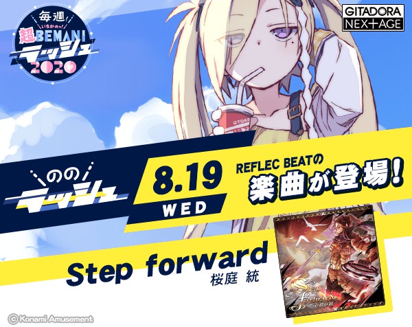 8月19日(水)の「毎週!いちかの超BEMANIラッシュ2020」は「ののラッシュ」対象曲が追加! WEBサイトのカードゲームでスタンプをゲット! スタンプを使って楽曲をアンロック可能状態にしたら #ギタドラ をプレーしてね。 「Step forward / 桜庭 統」が #GITADORA で解禁!! 詳細はコチラをCHECK! http://eagate.573.jp/game/bemani/wbr2020/ ※今後の状況によっては、終了時期を変更する可能性がございます。