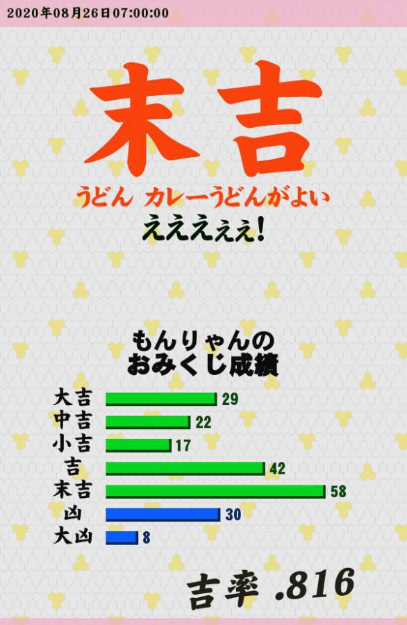 今日のおみくじ! 響「カレーうどんって美味しいよね!!(ズルズル)( ≧∀≦)ノ」 クリス「このクソ暑いときに、よくそんなの食えるな┐(^_^;)┌」 弦十郎「暑いときこそ熱いものを食う。これぞ最高の消夏法だ!( ・`д・´)」 エルフナイン「僕もいただきます。時間がないので白衣は着たままで……」 その場にいる全員『えええぇぇ!Σ( ̄□ ̄;)』 http://p.eagate.573.jp/gate/e/toomikuji.html?from=article