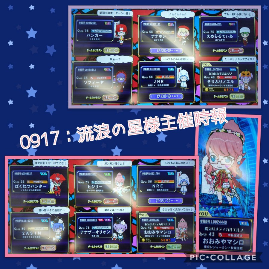 自分「こういう時だからこそ、よくばりセットだ!」 アイコ「ってことで、流浪の星さん主催の時報に緊急参戦っ!(*≧▽≦)ノ」 ミュー「乗っていた電車を秋葉原で乗り捨てましたっ」 メディア「知ってるお店、レジャーランドに入っちゃったわ♡」 マヤ「ご同行頂きました全ての方に、最上級の謝辞を捧げます♪」 自分「時間の都合で、4試合だけの参加となりました」 ミュー「勝てたと思ったら追い越されてたり…」 マヤ「意外にも勝ててしまったり、面白い試合展開が多かったです(*´▽`)」 アイコ「主催の流浪の星さんともマッチ成功っ!(*≧▽≦)ノ」 メディア「一緒に遊べて良かったわっ♪」 メディア「うふっ、久しぶりに妖精っぽい格好ねっ♪」 アイコ「…ミューすけは?」 ミュー「ハロウィンって絵本になっていませんか?」 マヤ「なってはいるけど、芸術かどうかは…^-^;」 自分「衣装作りも芸術のうち、ということで!💦」 マヤ「それじゃあ、今夜はこの辺りにしましょうか」 アイコ「ういういっ!(*≧▽≦)ノ」 ミュー「また次のお楽しみ、です♪」 メディア「じゃあねっ♡」