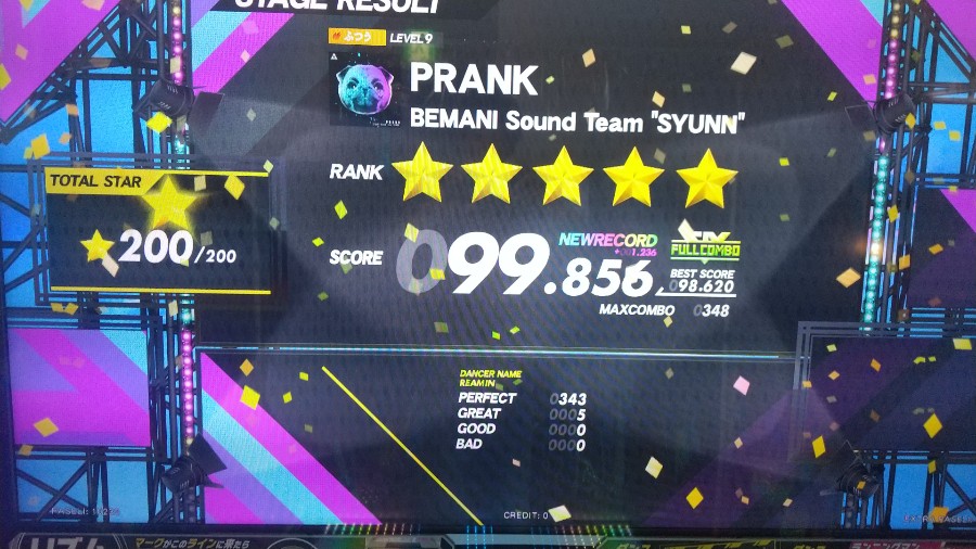 PRANK ふつうLv9 エキストラ専用曲2回目でグレ5フルコンボ!…本日、レベル9 2曲目の新規フルコンボ!