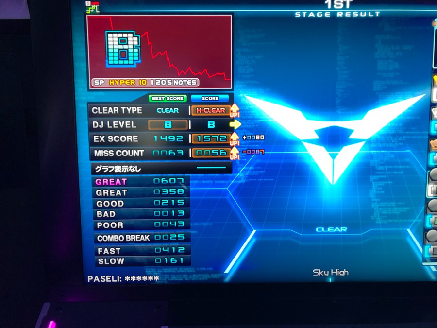 睡眠時間4時間しか寝てない僕がまだリザルトあるぜ💦 sky high hyper 正規 BP50台でもハードいけました!プレッシャーとの格闘してました(^◇^;)