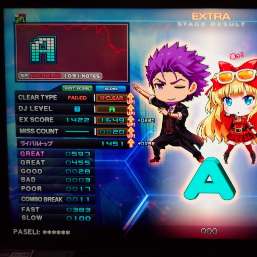 QQQ spa ハード!前回なんで死んだんだっけ?ハマってゲージ溶けた記憶があるけど普通に押せてた、TaQ譜面は押しにくいってのはありますがね…DXY!は別格で(;゜∀゜)