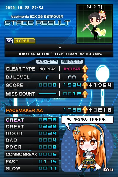 ☆10 Aリミ(SPH)正規ハードです。 なかなかの良リミックスですね~。 1クレ目は様子を見ながら新曲ハイパー中心でまず指を温めました。