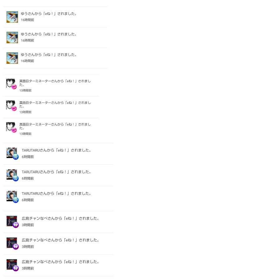 ゆうさん・eね!32回。 真面目ターミネーターさん・eね!32回。 TARUTARUさん・eね!31回。 広島チャンなべさん・eね!30回。 皆様ありがとうございます😊