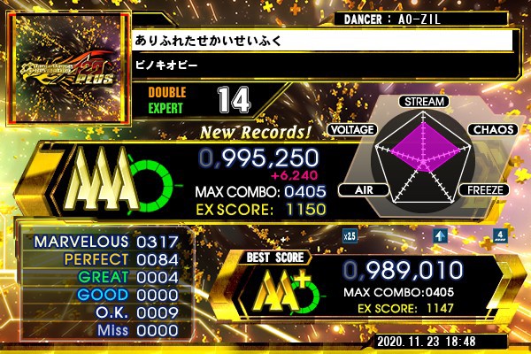 DP14のAAA4曲目も取れた〜 容易く爆伸びしてるように見えて結構連奏した
