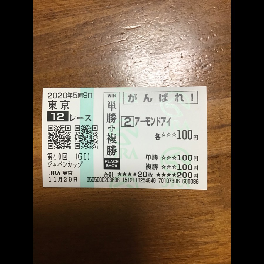 今日もまた素晴らしい日でした!! 昨日、東京競馬場に行けたんで、 アーモンドアイのがんばれ馬券買ってたんですが、 もう払戻せず取っておきたい気分です。