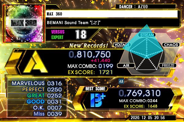 SP18ノンバー最高スコア出ました!! 800kは2曲目です(๑•̀ㅂ•́)و✧