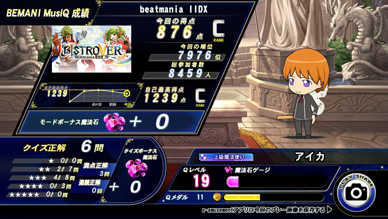 今日のQMAさん。 懲りずに、弐寺MusiQで三度轟沈… スコアが3桁って散々ですね😥