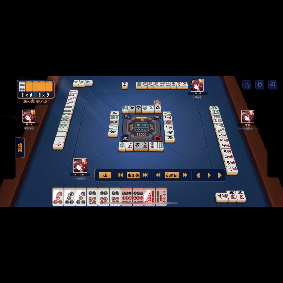 38000で、トップの東3局 5萬ポンで、9筒5索待ち 対家から上がれました。 三色同刻トイトイドラ6の倍満です。 三色同刻は、全く気がついていませんでした(^_^;) 初めて上がれました。 ここで、対家がトビ終了だったので、トップ終了でした。
