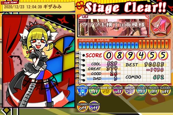 前回左手が地獄だった曲。ミラーにしたらBADかなり減って曲を楽しむ余裕もできた😄次回はスコアアップ狙いたい。
