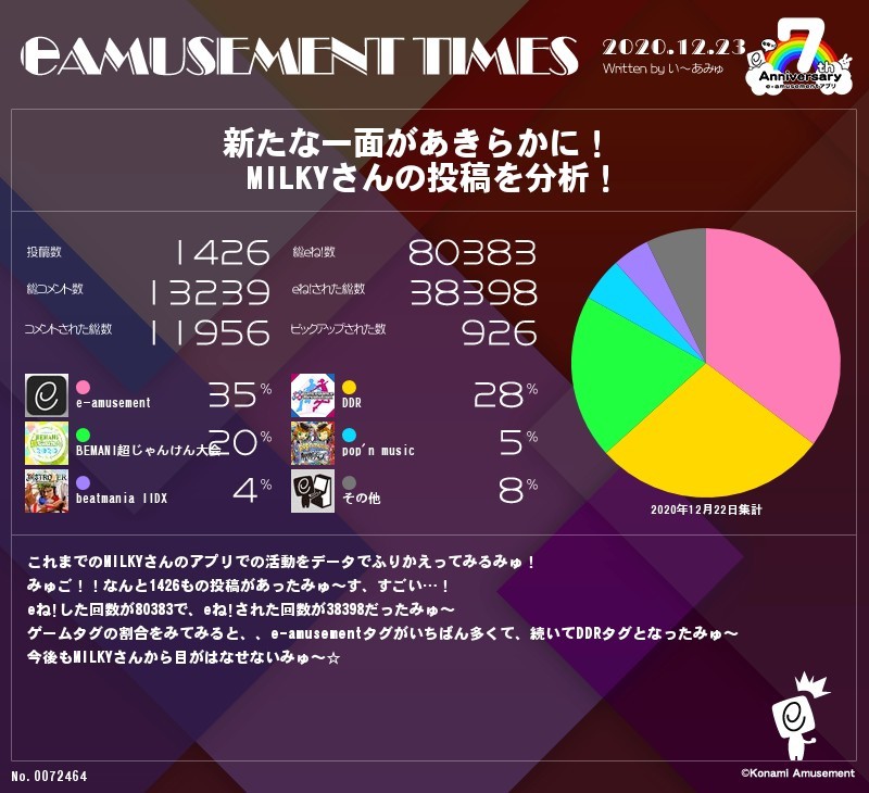 カテゴリ別の分布図です🙇 e-amuとDDRが多いのはまあわかっていました😃 が、次にじゃんけんでしたか😅 ⅡDXとポップンが入ってきているのは、何より2020年の特徴です😃🎵