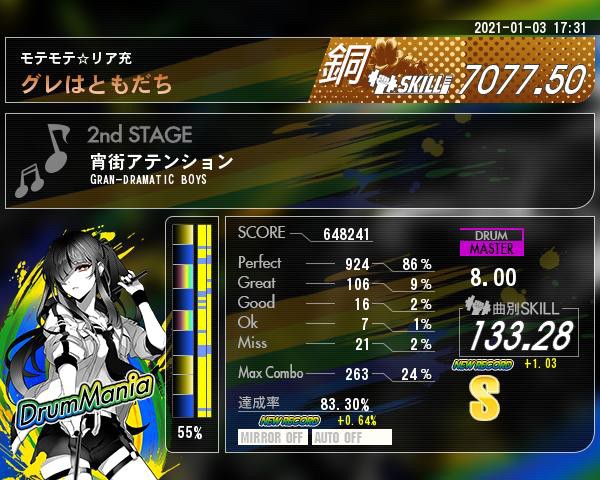 なんで伸びたかわからんし再対象入りも更に謎い( ¨̮ )微伸びだがな! スカスカシンバルに緩く踏ませる両足とかもうほんと地獄なんだ、リズム感がブラジルに旅行しにいくんだ( ¨̮ )ほんとむーり!