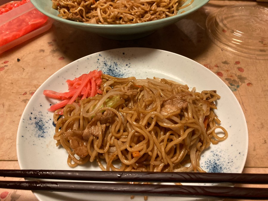 バンめしは焼きそば。 正月ムードは終わりました。