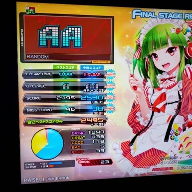 5日振りのACを満喫してきました! 個人的神曲ハードいけましたヽ(´∀`)ノ 正規当たりと言われてますが、乱じゃないとスコアもBPも減らなかったです(^^;