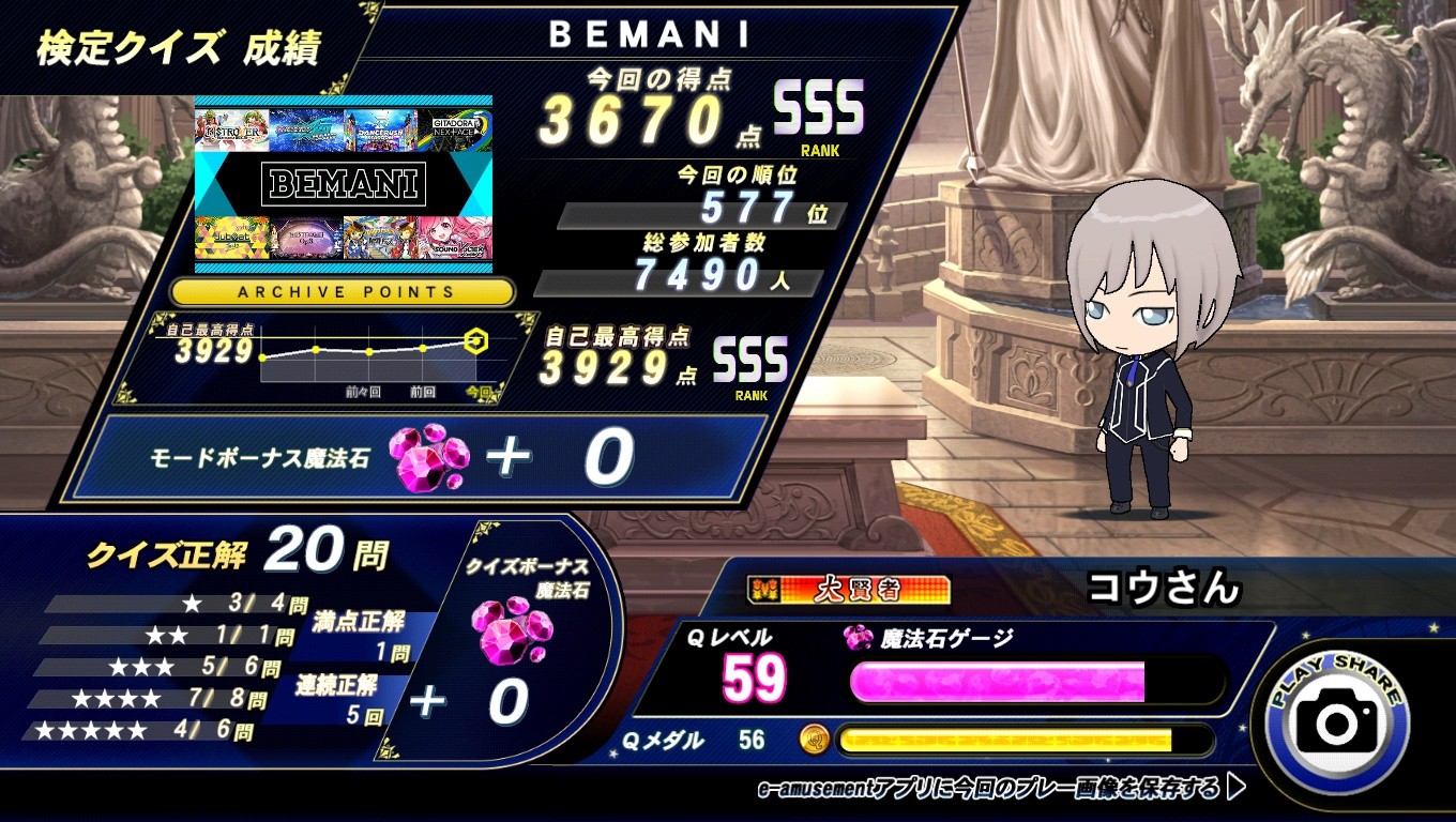 1/29日分ラスト、今回のBEMANIアーカイブ検定、SSS乗せして終了です