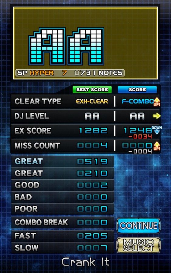 Crank It SPH7 EXH-CLEAR→(4回目)F-COMBO こちらもフルコンまであまり時間かけずにできました^^